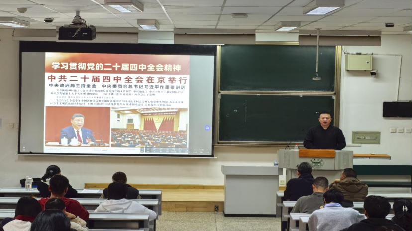之后,学院党委委员、副院长董雁伟进行《学习贯彻党的二十届四中全会精神》的主题宣讲。董雁伟同志带领师生党员重点学习了《中国共产党第二十届中央委员会第四次全体会议公报》《中共中央关于制定国民经济和社会发展第十五个五年规划的建议》等内容,并强调党的二十届四中全会是在我国即将胜利完成“十四五”规划主要目标任务、进入基本实现社会主义现代化夯实基础、全面发力的关键时期召开的一次重要会议,是实现中国式现代化新征程上的又一次总动员、总部署。