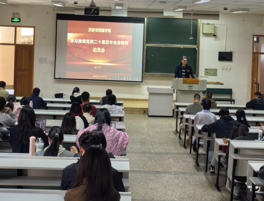 2025年11月7日上午,历史与档案学院党委在文渊楼205开展学院分党校2025年第八次党员基础培训活动。本次培训主题为“党的二十届四中全会精神学习宣传动员会、宣讲及学习习近平总书记关于做好新时代党的统一战线工作的重要思想”。