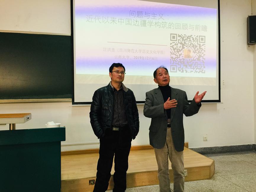2019年12月6日14:30,四川师范大学历史文化与旅游学院教授、院长,四川省有突出贡献的优秀专家,四川省社会科学重点研究基地中国近现代西南区域政治与社会研究中心主任汪洪亮教授受邀来到云南大学历史与档案学院,于文渊楼318室为学院师生带来一场题为“问题与主义:近代以来中国边疆学科构筑的回顾与前瞻”的学术讲座。